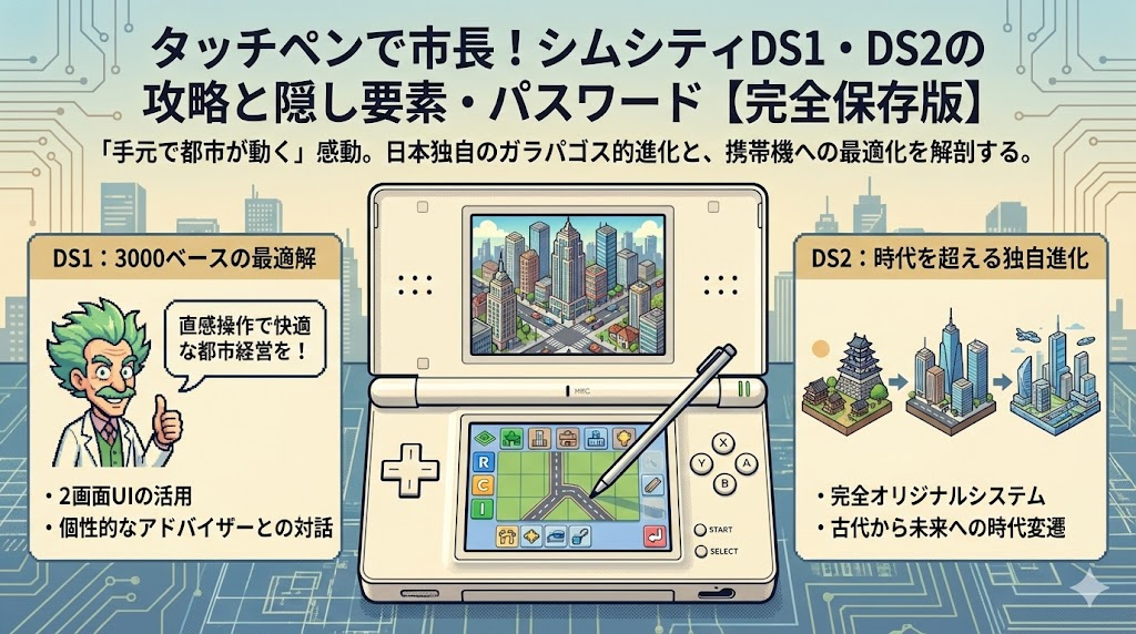 「手元で都市が動く」という感動を、覚えているでしょうか。 ニンテンドーDSで発売された『シムシティDS』シリーズは、PC版の移植にとどまらず、日本独自の「ガラパゴス的進化」を遂げた非常に興味深い作品です。 タッチペンで区画整理をする直感的な操作... ゲーム