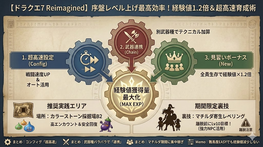 【ドラクエ7リメイク】序盤のレベル上げ最高率!新要素「かけもち」で経験値1.2倍にする方法【Reimagined】