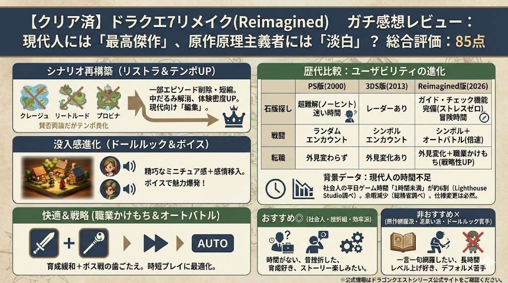 【クリア済】ドラクエ7リメイク(Reimagined)はひどい?改変やリストラの真実をガチ感想レビュー