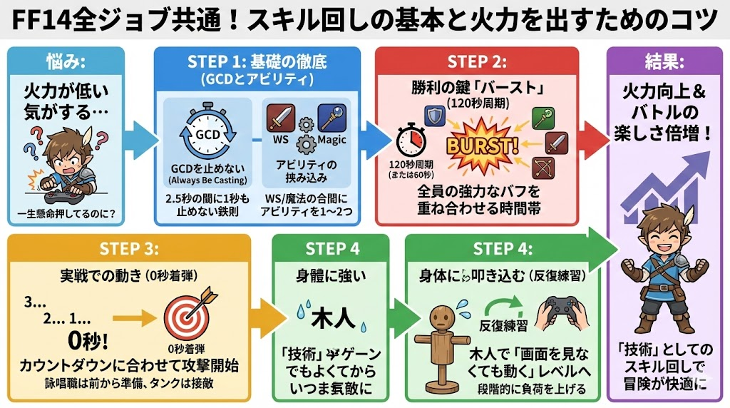 【FF14】全ジョブ共通!スキル回しの基本と火力を出すためのコツ