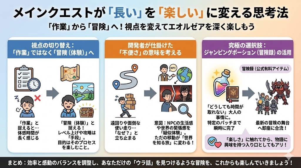 効率と感動のバランスを自分なりに調整することが、エオルゼアでの生活を長く楽しむための唯一の正解です。