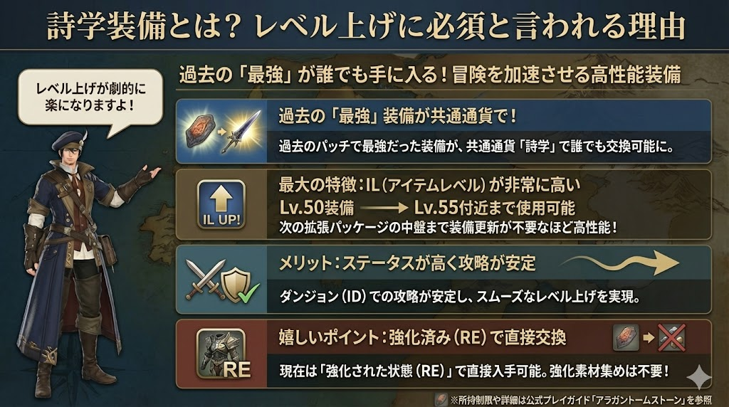 詩学装備は、レベル上げを快適にするための「冒険者のユニフォーム」のような存在です。