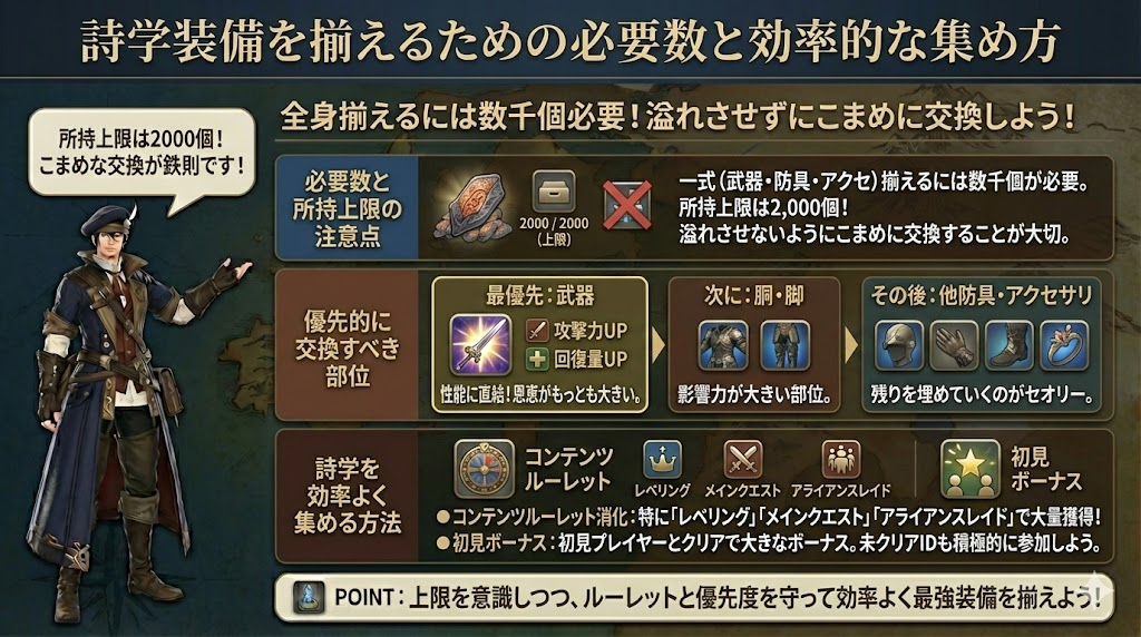 詩学装備を揃えるための必要数と効率的な集め方
