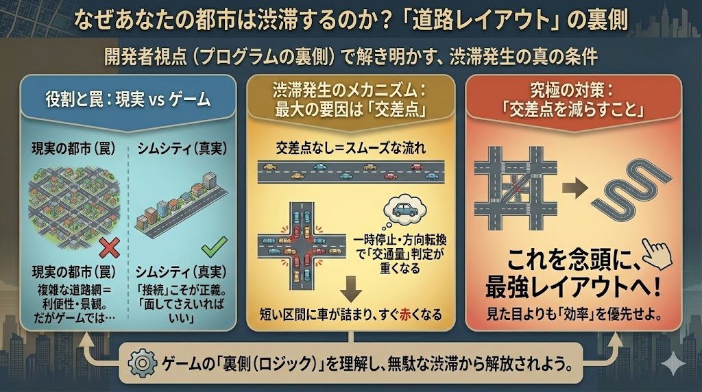 実は、このゲームの道路システムにはある種の「裏側(ロジック)」があり、それを理解すれば渋滞は怖くありません。