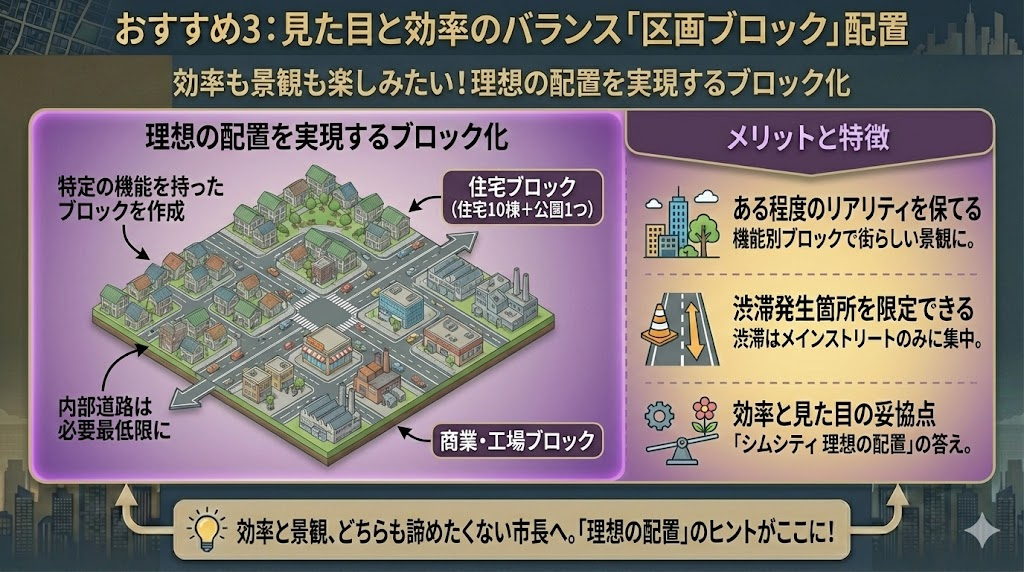 おすすめ3:見た目と効率のバランス「区画ブロック」配置