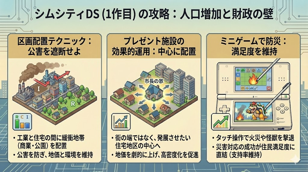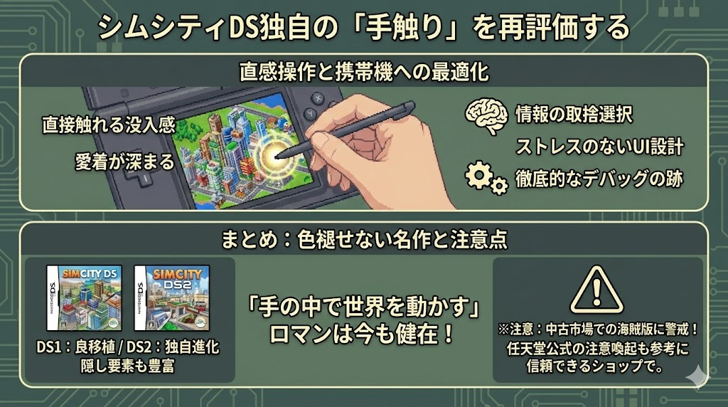 この設計思想こそが、DS版シムシティが単なる移植作で終わらなかった最大の理由ではないでしょうか。