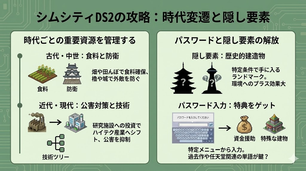シムシティDS2の攻略:時代変遷と隠し要素